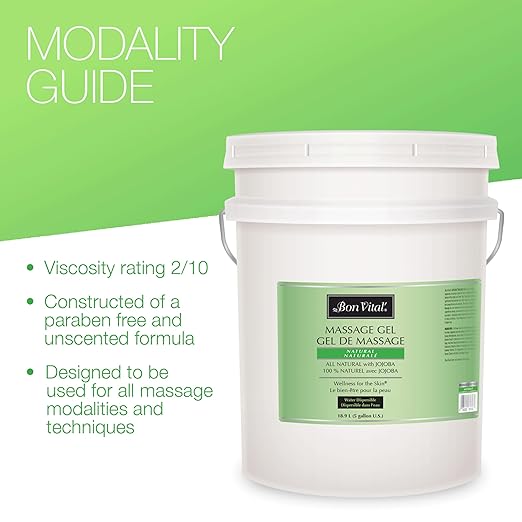 Bon Vital' Naturale Massage Gel with Natural Ingredients for Earth-Friendly Massage, Hypoallergenic Massage Gel for Sensitive Skin, Moisturizer Absorbs Like Lotion, 5 Gal, Label may Vary