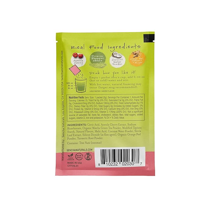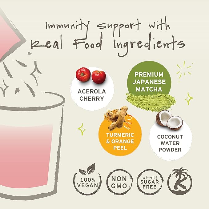 - Immunity Powerhouse; Get a balanced blend of immune support from whole food ingredients. This matcha tea includes acerola cherry, Japanese organic matcha powder, coconut water powder, and supporting herbs.