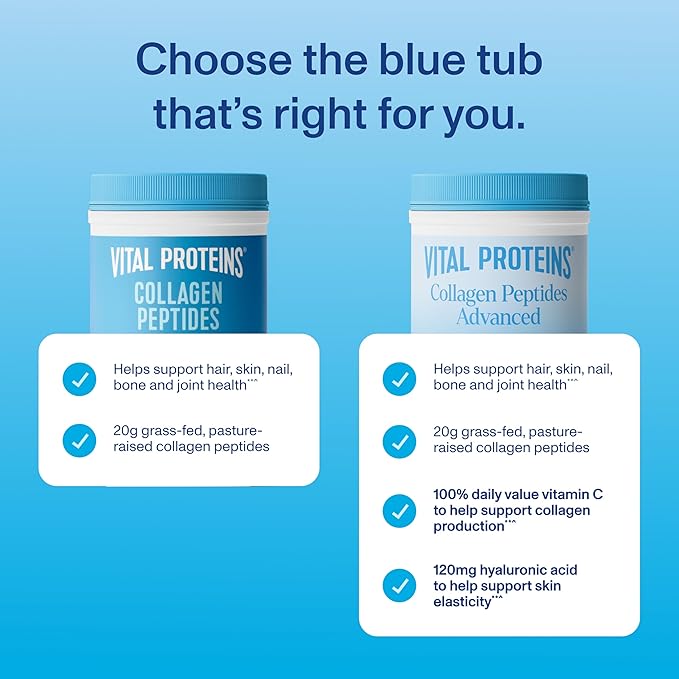 Vital Proteins Collagen Peptides Powder Advanced with Hyaluronic Acid & Vitamin C, Collagen Supplements, Unflavored, 13 Servings