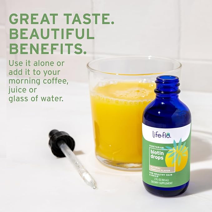 Life-Flo Biotin 10000mcg Drops with Vitamin D3, High Potency Liquid Biotin Supplement, Healthy Hair, Skin and Nails Support, Natural Vanilla Flavor, Vegetarian, 60-Day Guarantee, Approx. 60 Serv, 2oz