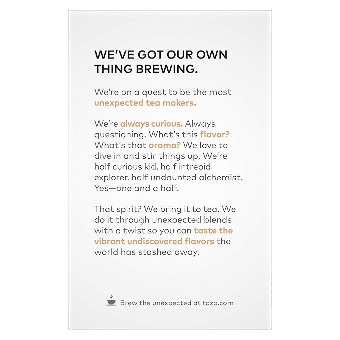 - TRUSTED COMPANY: Go beyond the traditional cup of tea with TAZO Teas