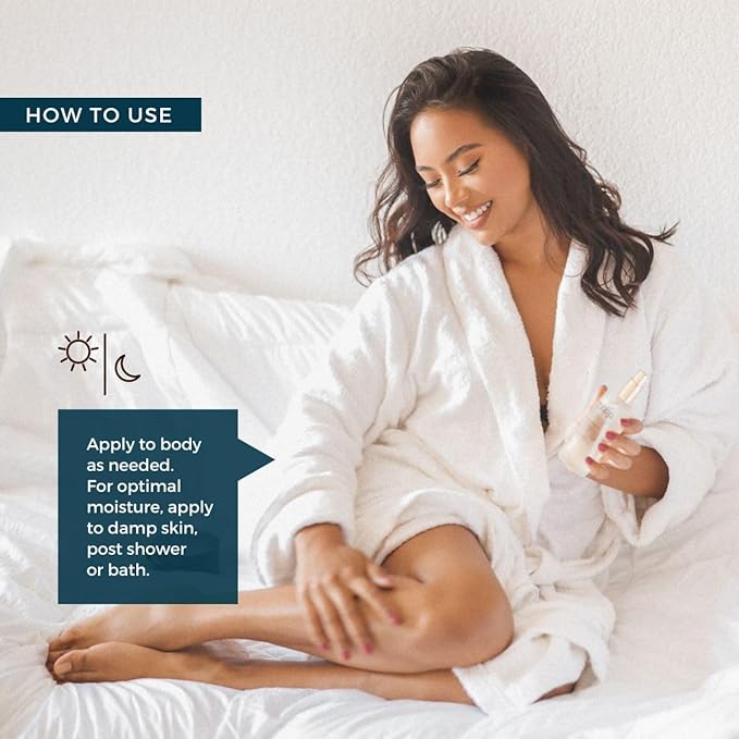 - QUICK ABSORBING, NON-GREASY FORMULA: This body oil deeply penetrates the skin to quickly absorb and provide long-lasting moisture with a velvety finish. Not sticky nor greasy and will not transfer to other clothes.