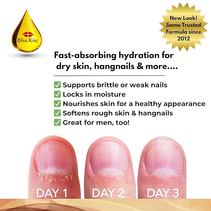 Bliss Kiss | Vanilla Fragrance | Nail Oil Cuticle Dropper w/Vitamin E & Jojoba⏤Nail Strengthener Nail Growth Serum for Brittle Peeling Breaking Thin Nails | 0.5oz |