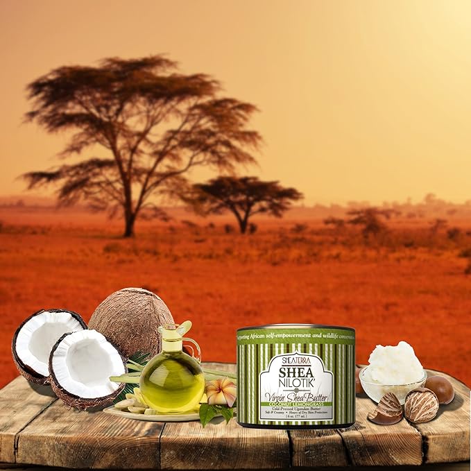 Shea Terra Organics 100% Organic Cold-Pressed Virgin Shea Butter – Coconut Lemongrass | Natural Anti-Aging Daily Skin, Nails & Hair Cream to Soften Dry Skin, Reduce Wrinkles & Stretch Marks – 6 oz