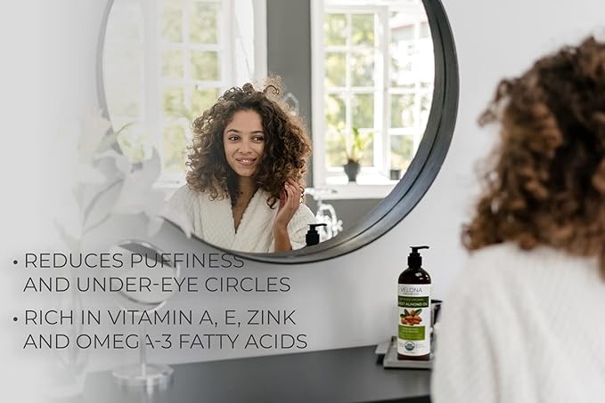 velona USDA Certified Organic Sweet Almond Oil - 16 oz | 100% Pure and Natural Carrier Oil | Refined, Cold Pressed | Skin, Hair, Body & Face Moisturizing | Use Today - Enjoy Results