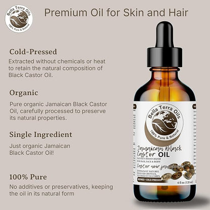Bella Terra Oils - Jamaican Black Castor Oil 8 oz - Capturing the Essence of Nature, A Versatile Addition to Your Beauty Routine