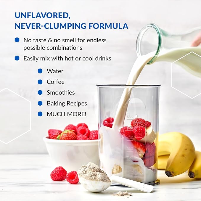 - MIXES EASILY WITH NO CLUMPS. Our Multi Collagen dissolves quickly and easily in hot and cool liquids. It comes in four flavors you’ll savor and look forward to, including great-tasting Vanilla, Chocolate, and Fruit Punch. Or if you prefer a completely odorless and tasteless version, it’s available Unflavored, which also comes in single packets that are perfect for travel and on-the-go. Add a scoop to your morning coffee, smoothies, non-dairy beverage, or baking recipes.