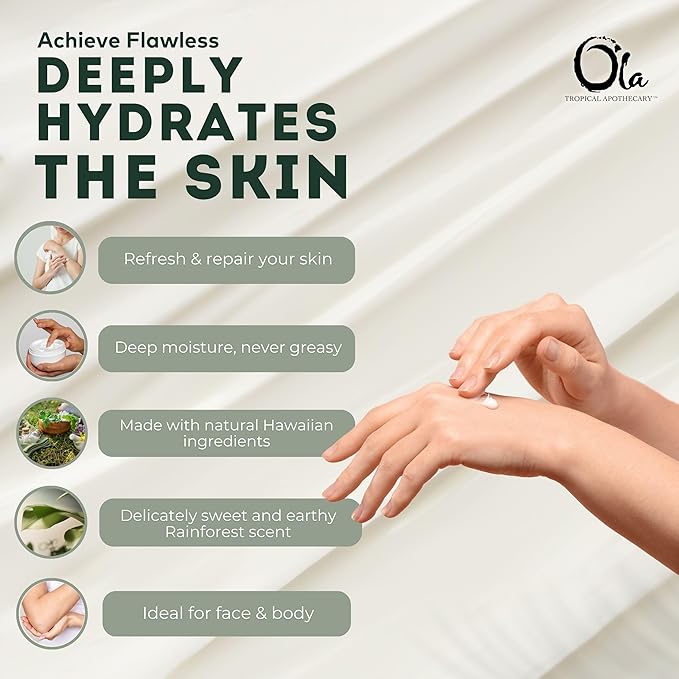 • Ola Tropical Apothecary Rainforest scented Body Lotion is Delicately fragrant and grassy with subtle notes of Sandalwood. It evokes the sweet, earthy aroma of the ancient Hawaiian rain forest.