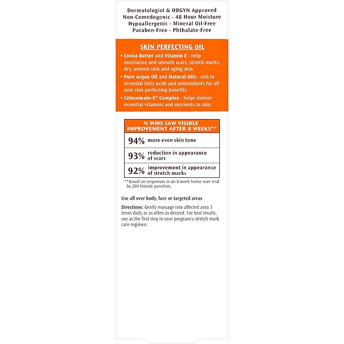 - Moisturizing Body Oil: This 48-hour moisturizing body oil helps to improve the appearance of scars, stretch marks, dry & damaged skin, uneven skin tone, aging skin & fine lines & wrinkles
