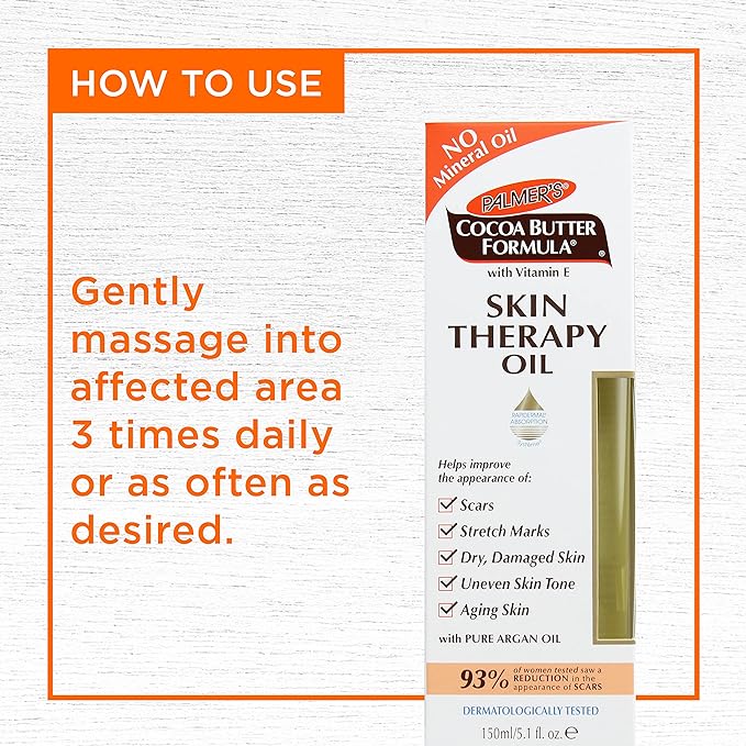 Palmer's Cocoa Butter Formula Skin Therapy Moisturizing Body Oil with Vitamin E & Pure Argan Oil, Deep Body Moisturizer for Dry, Damaged Skin, Scars or Stretch Marks, 5.1 Fl Oz (Pack of 3), YELLOW