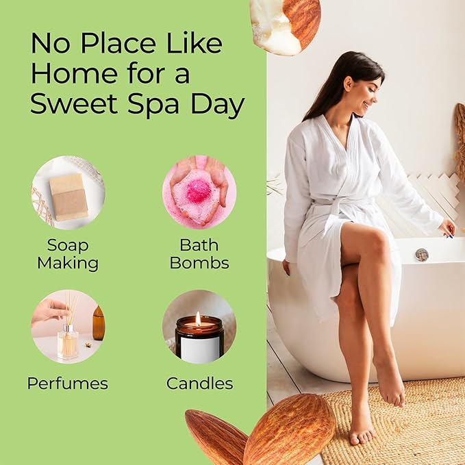 - Almond Scented Relaxation: Premium Grade Almond Fragrance Oil (0.33 fl oz/10 ml) is perfect for enhancing your soap recipes, candle making, and skincare products. This sweet, nutty aroma blends seamlessly with vanilla essential oil and coconut oil, offering a delightful winter essential oil blend for all seasons
