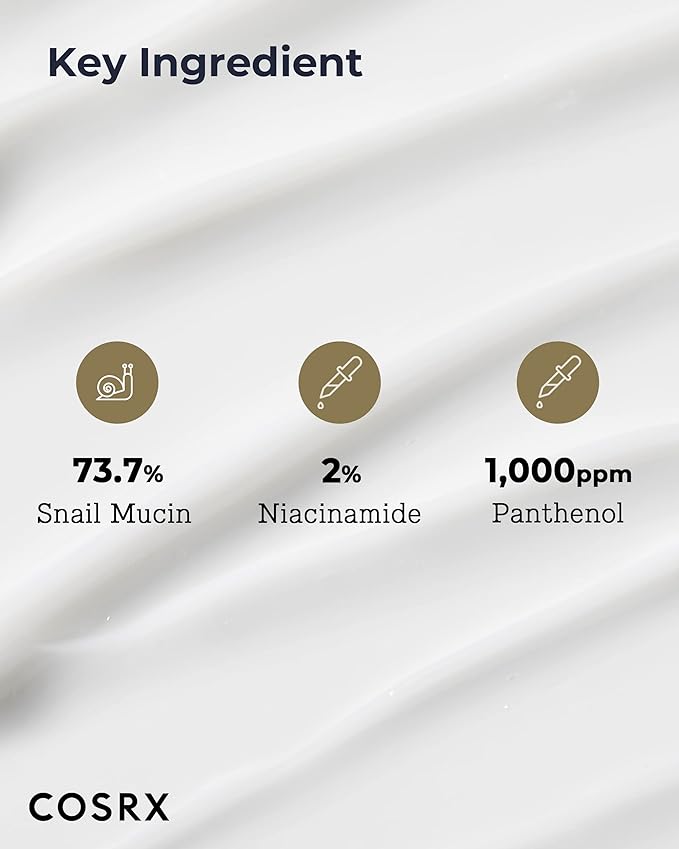 - Key Ingredients: 73.7 Snail Mucin (Snail Secretion Filtrate) rejuvenates the skin, 2% Niacinamide helps lighten the appearance of dark circles, 5 Peptides Complex and Adenosine help firm skin and reduce wrinkles and fine lines.