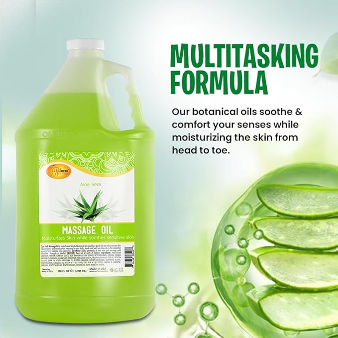 SPA REDI - Massage Oil, Aloe Vera, 128 Oz - Professional Pedicure, Manicure, Full Body Massage Therapy, Made with Almond Oil, Cotton Seed Oil, Sunflower Oil, Avocado Oil, Essential Oils, Vitamin E