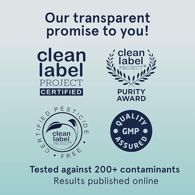 - FULL TRANSPARENCY Every batch of every product tested for purity and potency by Clean Label Project. They use independent laboratories and publish the test results for everyone to see.
