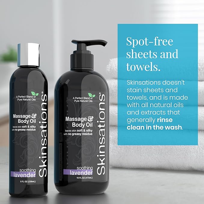 - Made and packaged in the USA – Money-back Guarantee! Skinsations is a natural massage oil, scented body oil and after shower oil moisturizer all-in-one!