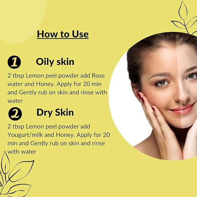 • Brightening and Stimulating Hair Growth: Lemon Peel Powder for Face and Body Care