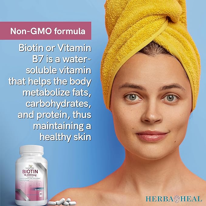 Biotin 10,000MCG Capsules Hair Growth for Women and Men - Vitamin B7 Pills - High Potency Supplement for Healthy Skin Nails and Hair Transplant