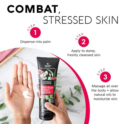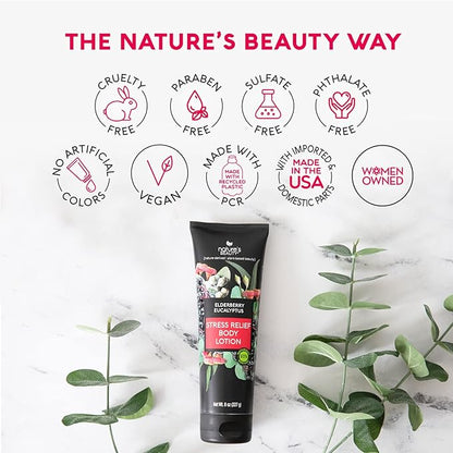 Nature's Beauty Elderberry Eucalyptus Stress Relief Body Lotion Multi-Pack - Lightweight, Non-Greasy Restore Moisturizer, Made w/Shea Butter, Avocado Oil and Sweet Almond Oil, 8 oz (2 Pack)
