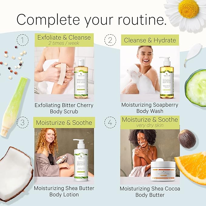 - 🌱 FRAGRANCE FREE LOTION FOR DRY SKIN: Unlike other organic body lotion, our body lotion balances your skin's pH thanks to the amazing Soapberry! Experts agree that when you balance your skin’s pH instead of coating it in oils, it naturally balances its own moisture. We simply added our Moisturizing Blend (Shea Butter, Cocoa Butter, Oatmeal, Chamomile, Aloe Vera) to create a body lotion that nourishes and calms dry skin, leaving moisture without residue!