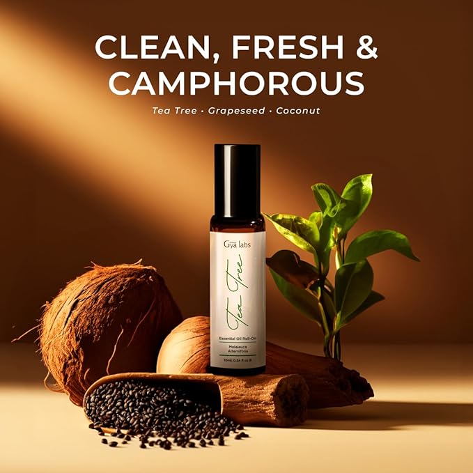 Gya Labs Tea Tree Essential Oil Roll on for Skin, Face & Nails, 100% Pure Natural Australian Melaleuca Tea Tree Oil Roller, Refreshing Aromatherapy, Travel Size (0.34 Fl Oz)