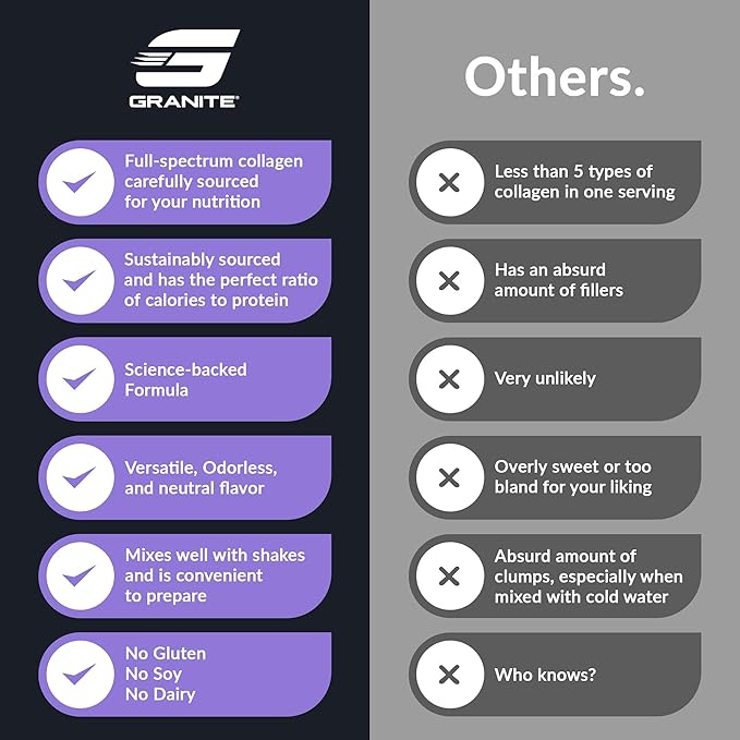 Granite Supplements Collagen Peptides Powder - Hair Skin and Nails Vitamins with Type I, II, III, V, X Hydrolyzed Collagen Peptides for Nail Growth, Bone, Mobility, & Joint Support (16oz)