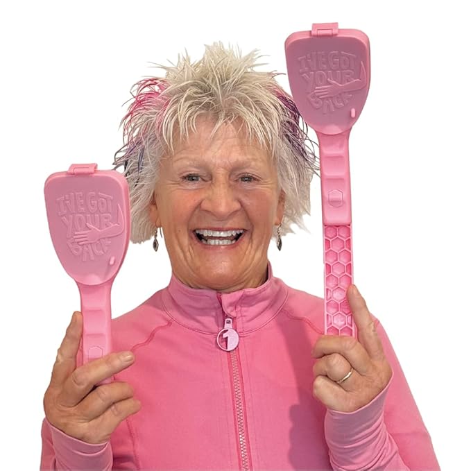 - EXTEND TO REACH: cleverly designed with a 150 degree curved, foldable 2-part handle. This allows your bakslap to be used with a short handle 8.6'' or extended to reach all areas at 15''. Tried and tested with all body types. Finger grooves to provide you with grip and comfort have been added to both handles.