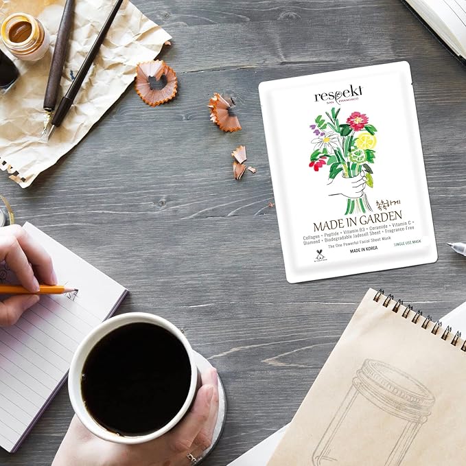 RESPEKT Facial Sheet Mask for Pore Tightening, Collagen Boost, Dark Spots, Moisturizing, Wrinkles: Collagen, Peptide, Hyaluronic Acid, Diamond Powder, Niacinamide, Biodegradable Sheet, 1 Sheet