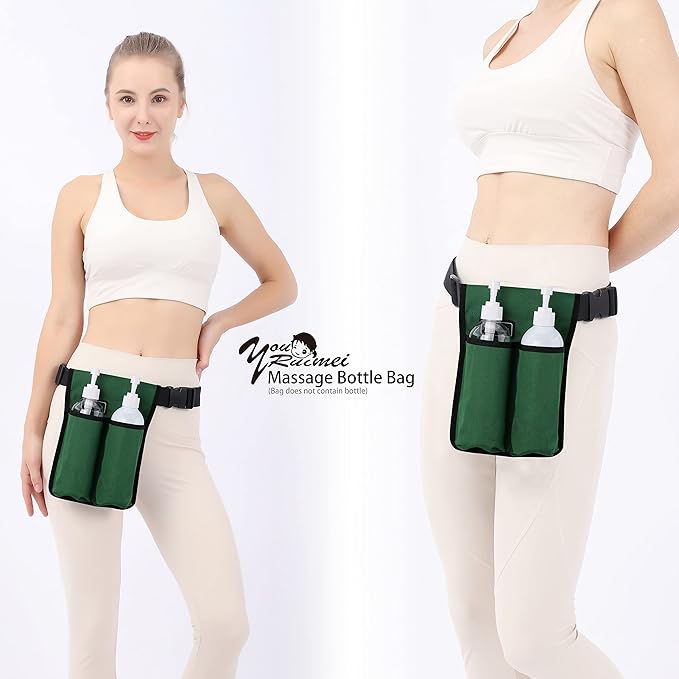 Massage bottle holster -2 adjustable massage oil bottle pack (2 Bottle, Green)