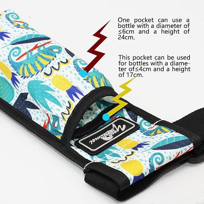- 3、Design :* The design of the bag has 3 pockets, the front design has two large pockets and a small pocket, can be used for different capacity of the bottle, the large pocket can be used for the diameter of 2.36 inches or less 9.45 inches of the bottle; Additionally, a small pocket can be used for bottles ≤1.57 inches in diameter and 6.69 inches in height; 4、The back of the bag features a stretch-tight