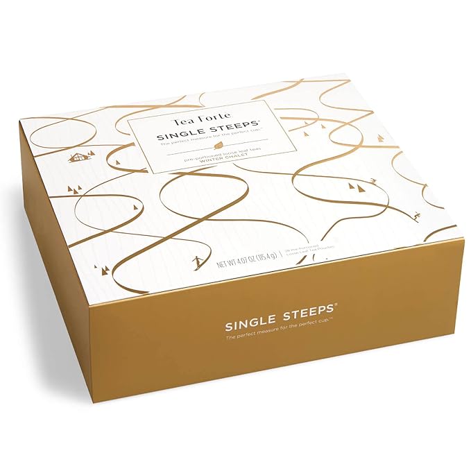 Tea Forte Winter Chalet Single Steeps Loose Leaf Premium Tea Gift Set Sampler, 28 Count, 2 of Each Assorted Blends Pre-Portioned Single Serve Pouches, Steeps 12 oz