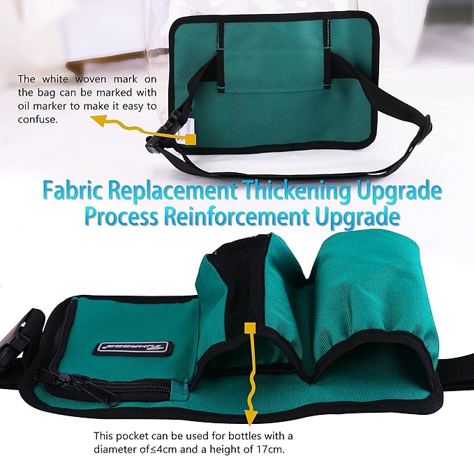 - 4、There are two big pockets and one small pocket in front which can be temporarily replaced with bottles of different capacities. The two big pockets can be used with bottles of diameter ≤2.36inch and height 9.45inch. One of them is made into a pocket in the form of mesh cloth, which is convenient to watch the capacity of the bottle; In addition, a small pocket can be used for a bottle with a diameter ≤1.57inch and a height of 6.69inch;