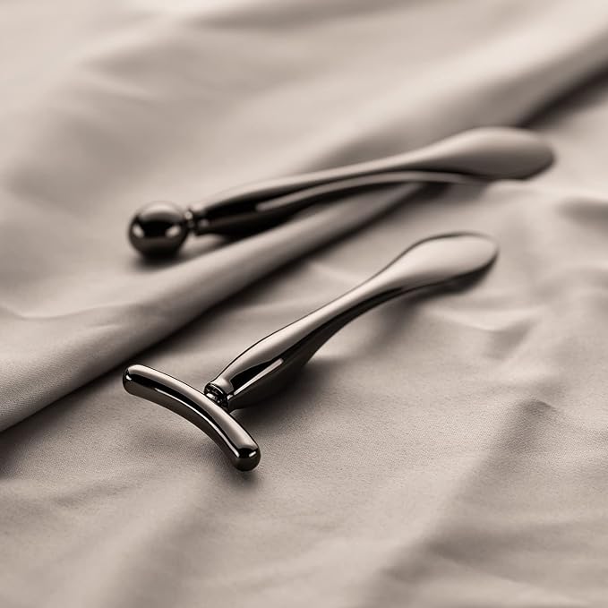 Lisapack 2PCS Metal Eye Cream Applicator Wand Stick, Massager Tool for Facial Massage, Reduce Puffiness (Champagne)