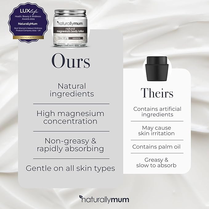 Magnesium Body Lotion [NATURAL & VEGAN] - Topical Magnesium Cream Lotion Support for Sleep, Bone, Heart & Muscle Health - Unscented - Made in UK & Safe for Kids