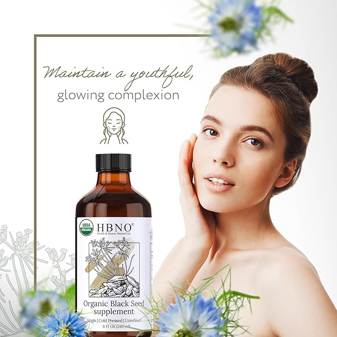HBNO Organic Black Seed Oil 8 fl oz (240ml) Value Size - USDA Certified Organic Black Seed Oil Organic Cold Pressed - Black Cumin Seed Oil Organic