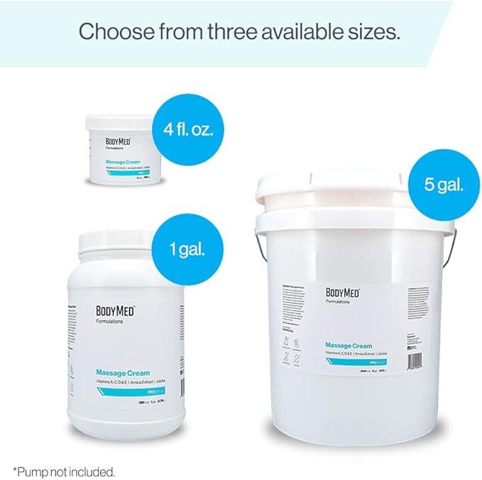 BodyMed Formulations Massage Cream, 5 gal. – Fragrance-Free, All-Natural Lotion for Massage Therapy – Leaping Bunny Certified – with Arnica Extract & Jojoba – Non-Staining, & Paraben Free