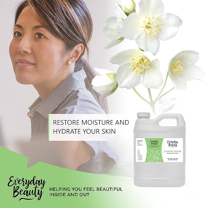 Jasmine Water Facial Toner - Bulk 32 Fl Oz - All Natural Hydrating Spray Mist for Face and Hair - 100% All Natural Jasmine Water Hydrosol