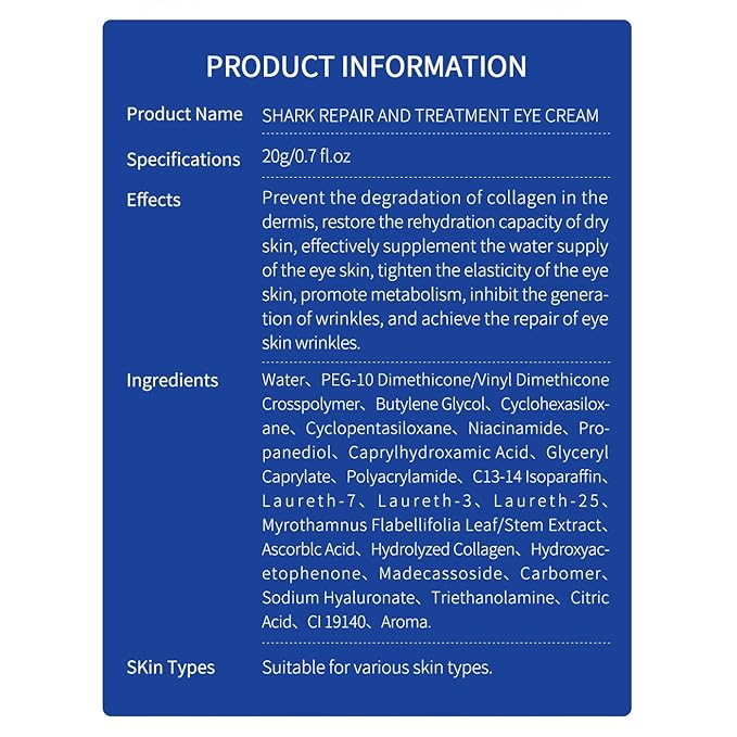 Eye Cream Reducing Fine Lines and Wrinkles Anti-Aging Eye Cream Repairing Dark Circles and Puffy Eye Cream 0.7 oz (shark)