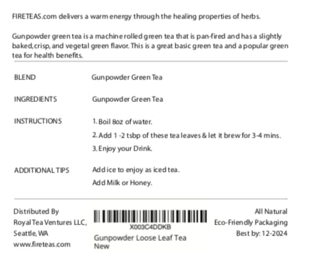 FIRE TEAS Gunpowder Tea Loose Leaf - Loose Leaf Tea -