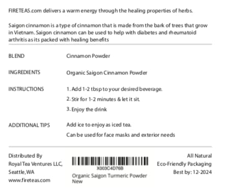 FIRE TEAS Pure Cinnamon Powder - Loose Leaf Tea -