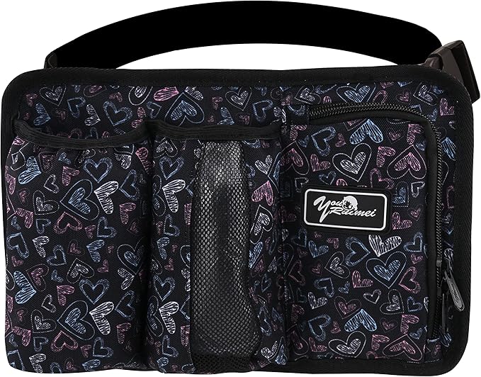 - B: On the right side of the Fanny pack, there is a zip-up bag with a width of 10cm and a height of 16cm, which is convenient for storing pens, mobile phones, lipsticks, and tools and materials related to car keys. C: The white woven mark on the bag can be marked with oil marker to make it easy to confuse.