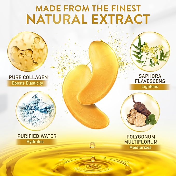- TARGETED TREATMENT FOR EYE PUFFINESS AND DARK CIRCLES: Under eye gold gel mask for puffy eyes and dark circles, our under eye patches for dark circles and puffiness offer the ultimate solution to refresh and awaken your under-eye area, reducing signs of tiredness and aging.