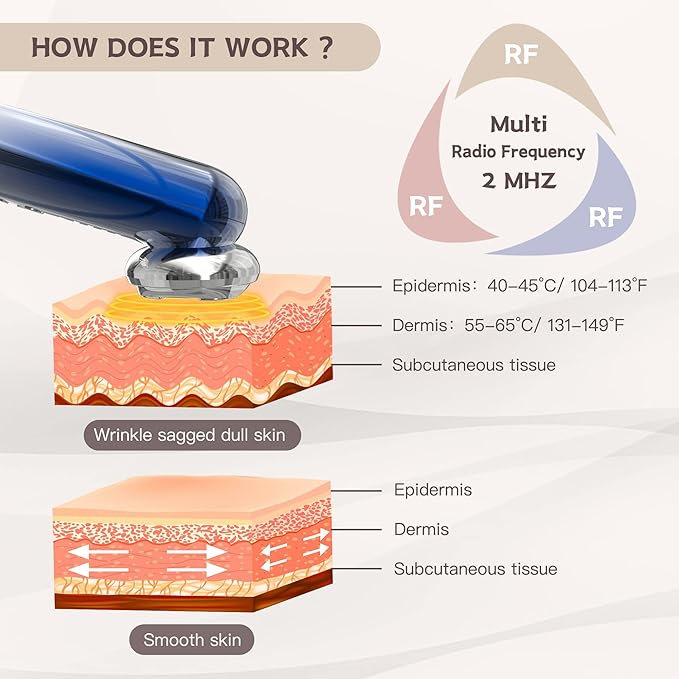 Radio Frequency Facial Machine - Home Use Anti-Aging Skin Tightening Rejuvenation Skin Care Device, Light Therapy for Wrinkles Lifting High Frequency Face Massager with EMS