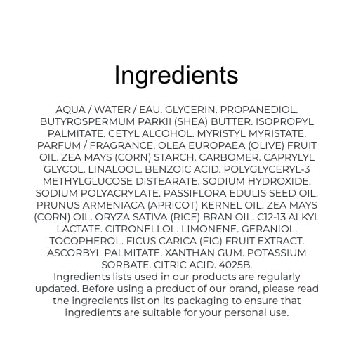 - BODY MOISTURIZING CREAM: For a longer-lasting fragrance apply after using the shower gel before our spray lotion
