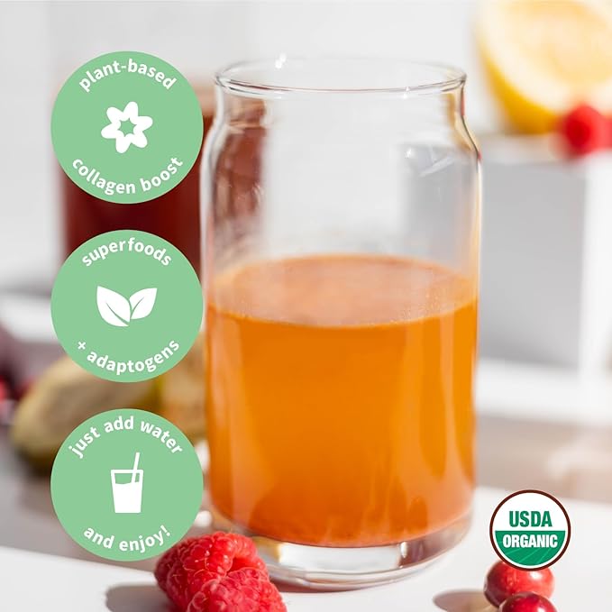 - ORGANIC, PLANT-BASED COLLAGEN BOOST - Food-based blend of superfoods and adaptogens such as vegan collagen-boosting tremella mushroom, bamboo silica, rose hips and biotin for a more glowing and radiant you. Just mix one scoop with 8oz of cold water, and enjoy!