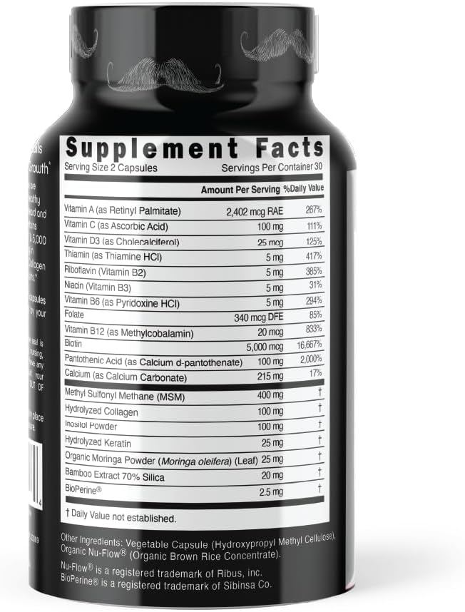 - 2 capsules a day of this effective hair supplement visibly improves hair growth and beard growth, thickness, and scalp coverage with natural ingredients that don’t compromise sexual performance.