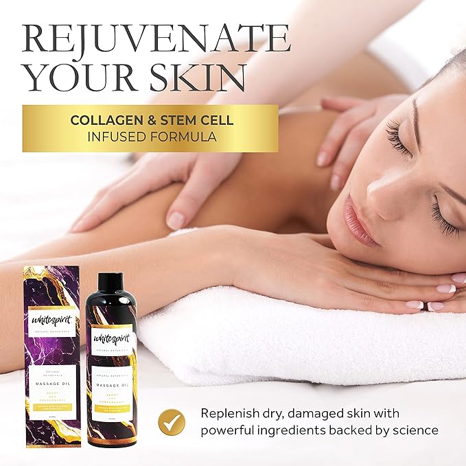 WHITESPIRIT Water Soluble Massage Oil - Large 11.83oz, Berry & Pomegranate Relaxing Aromatherapy, Warming Soothing Touch Plus Collagen