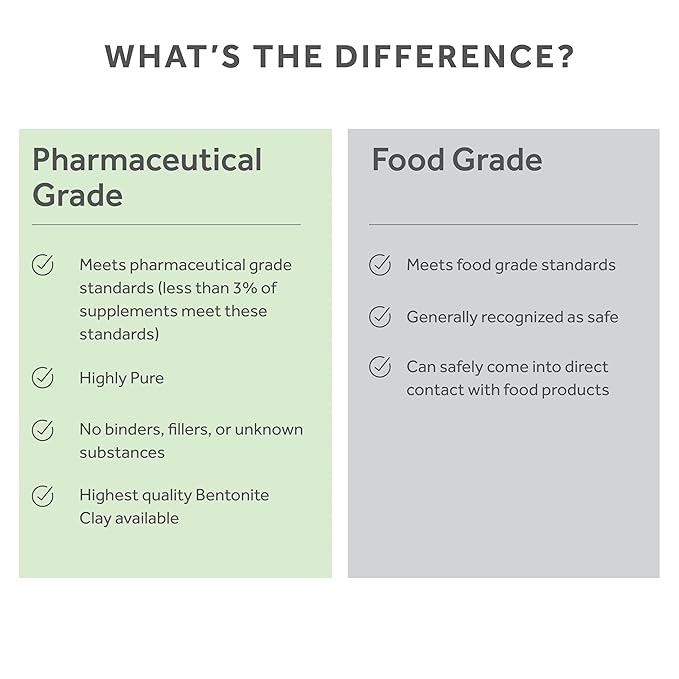 - FOOD GRADE BENTONITE CLAY 1LB Enjoy our 100% unrefined, pure calcium bentonite clay powder with no fillers, binders, additives or preservatives. Bentonite Clay helps absorb and eliminate harsh chemicals and toxins from your body