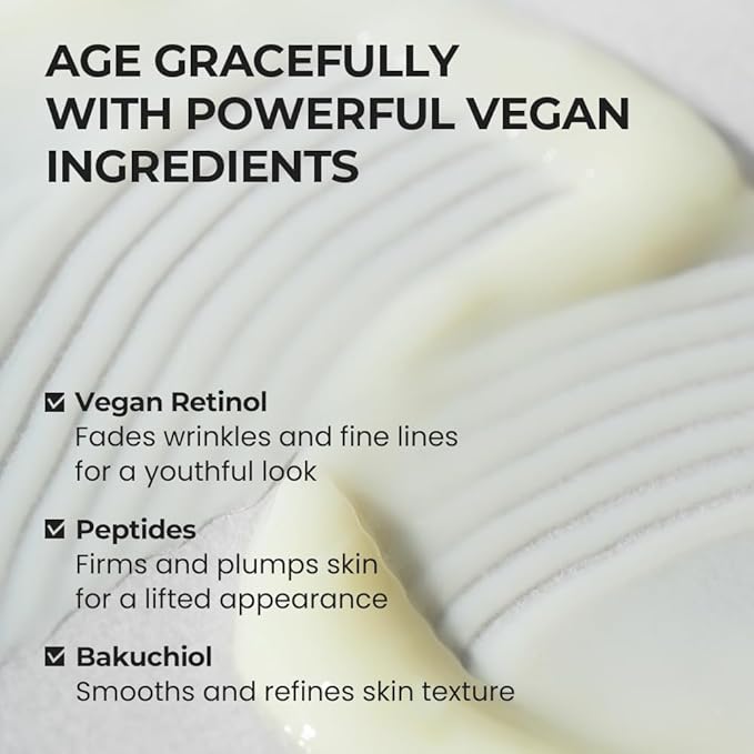 - Advanced Vegan Formula: Formulated with Vegan Liposome Retinol, Bakuchiol, and Peptides, this serum offers effective wrinkle care with minimal irritation. Vegan Liposome Retinol reduces signs of aging and improves skin texture, Bakuchiol minimizes fine lines and soothes the skin, while Peptides help firm the skin.