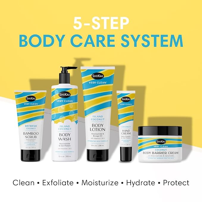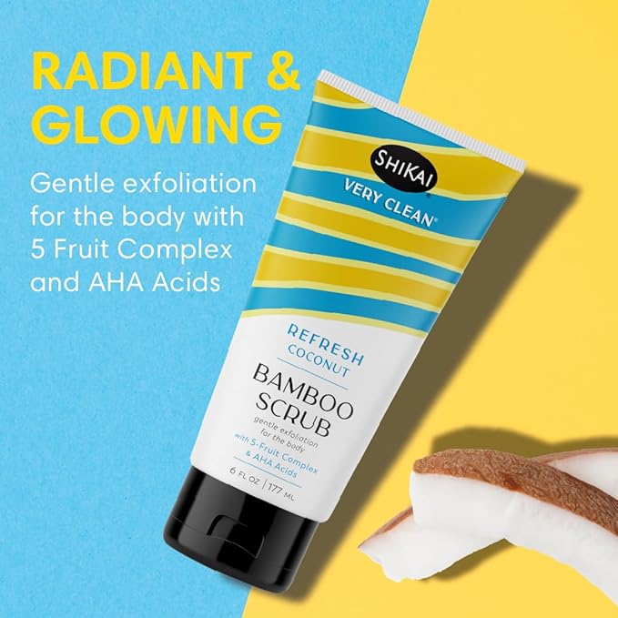 ShiKai Very Clean Bamboo Body Scrub (Refresh Coconut, 6 oz) | Gentle Hydrating & Exfoliating Skin Cleanser | With 5 Fruit Complex & AHA Acids