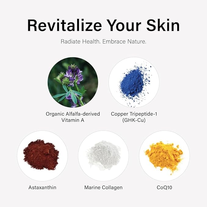 - Meticulously Made to Serve Your Skin: Organic Alfalfa-derived Vitamin A, sourced from France and GHK-Cu (Copper peptide) to support collagen synthesis and provide anti-aging benefits. Astaxanthin and Marine Collagen combine in this facial serum to target oxidative damage and help reduce UVB-induced inflammation of distressed skin while encouraging rapid repair.